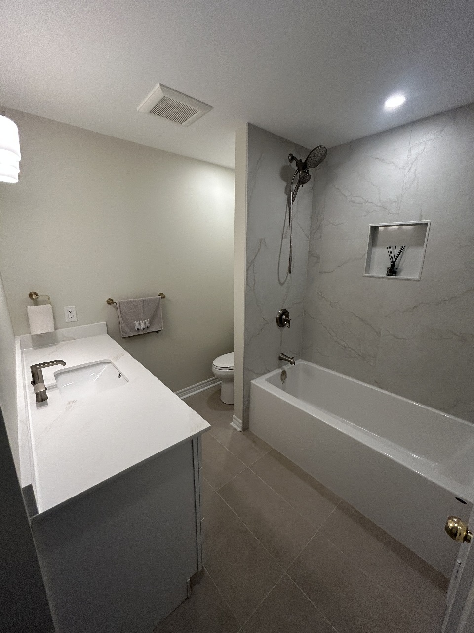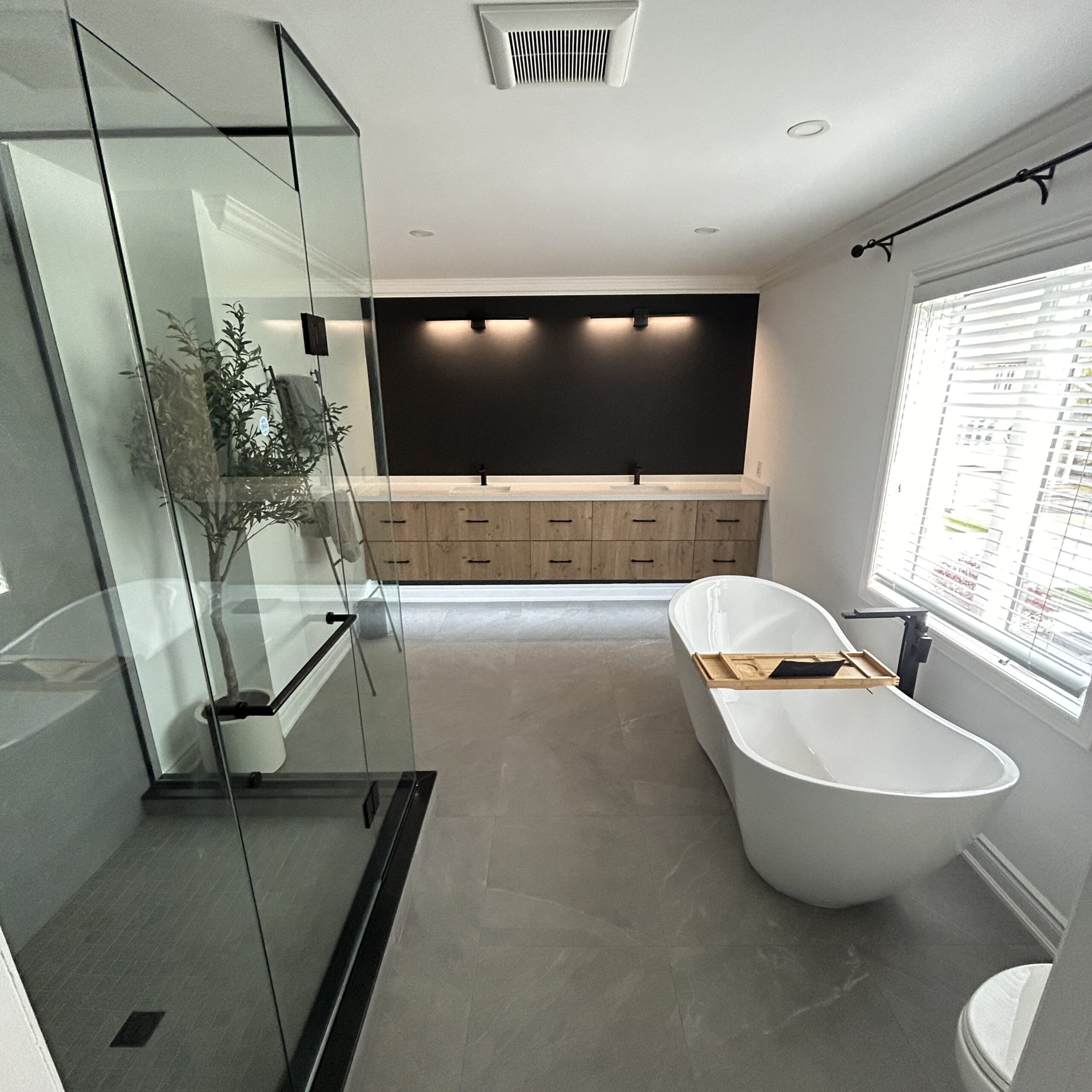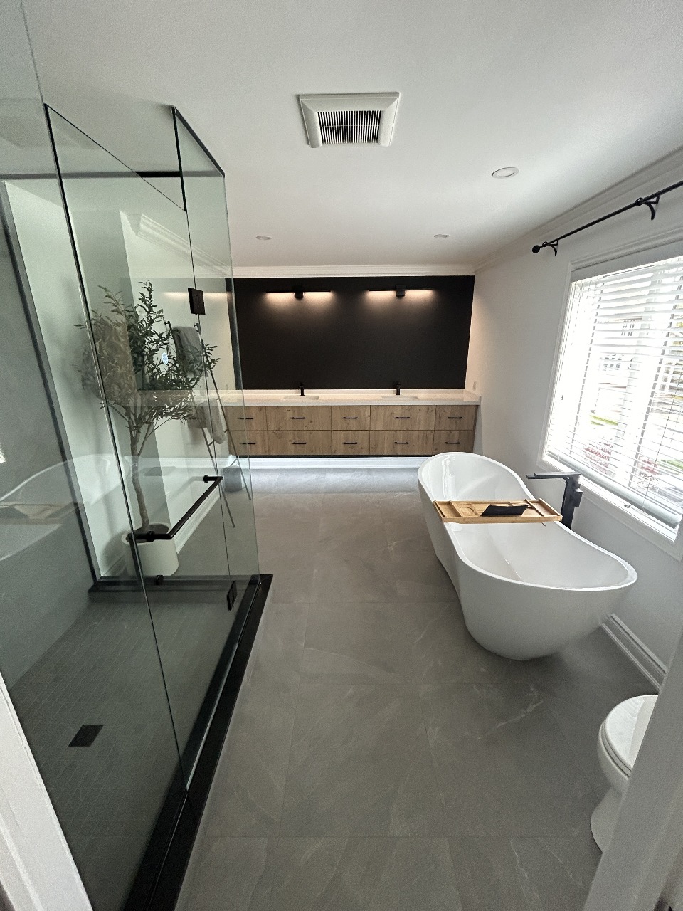 “We had the pleasure of working with Steve on two important home projects, and we couldn’t be happier with the results. The first involved total ceiling repairs after water damage, during which Steve and his crew seamlessly transformed our popcorn ceilings into smooth, flat finishes and updated all of our pot lights. The second project was a full renovation of our ensuite bathroom, completed both on time and with exceptional attention to quality and detail.